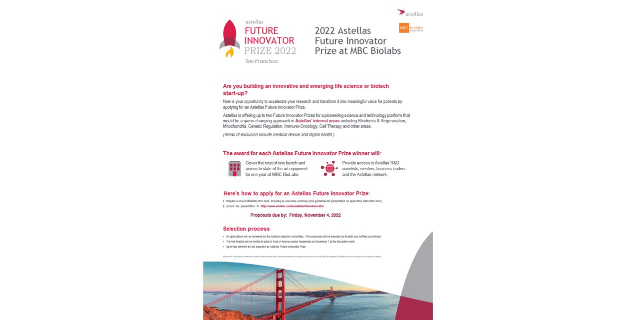 The prize opportunity application portal for MBC BioLabs is now closed.