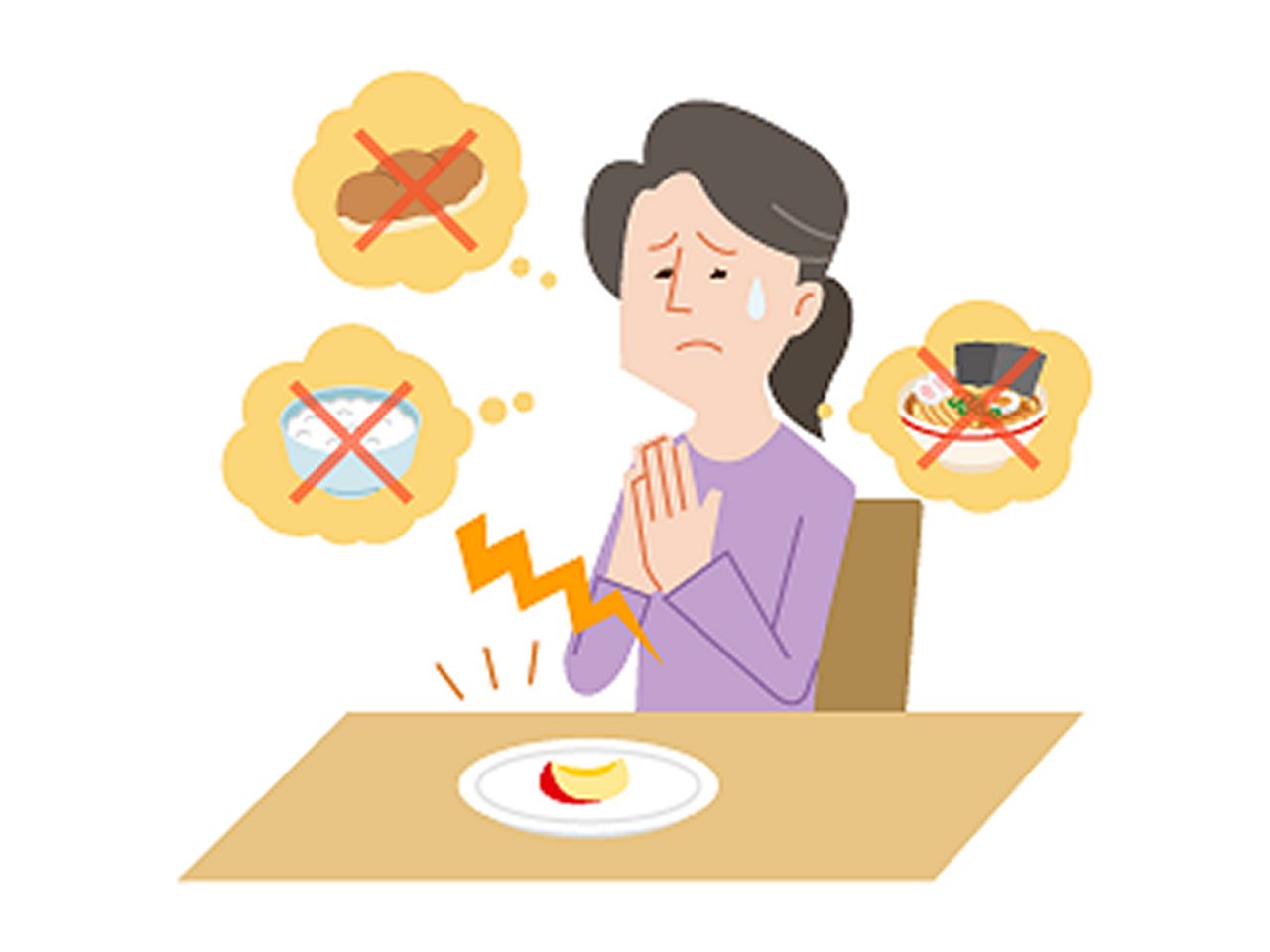 主な症状は吐き気・嘔吐、食欲減退、腹痛などです。